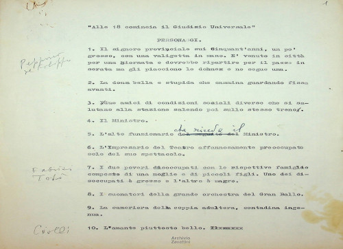 Cesare Zavattini , Gabriella Parca, Giulio Questi, Baccio Bandini, Carlo Musso, Gaio Fratini, Lorenza Mazzetti, Enzo Muzii, Sergio Perucchi, Gianfranco Mingozzi, Marco Ferreri, Elio Bartolini, Luigi Cavicchioli, Giulio Macchi, Ottavio Iemma